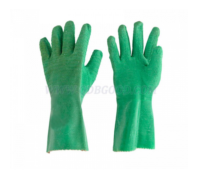 double layer interlock liner,long cuff, smooth latex fully coating,second wrinkle latex hand coating