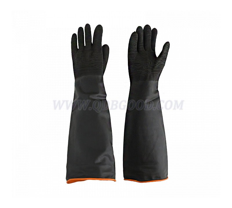 View More55cm black Neoprene chemical resistant industrial long glove anti allergic orange liner,palm crinkle finished